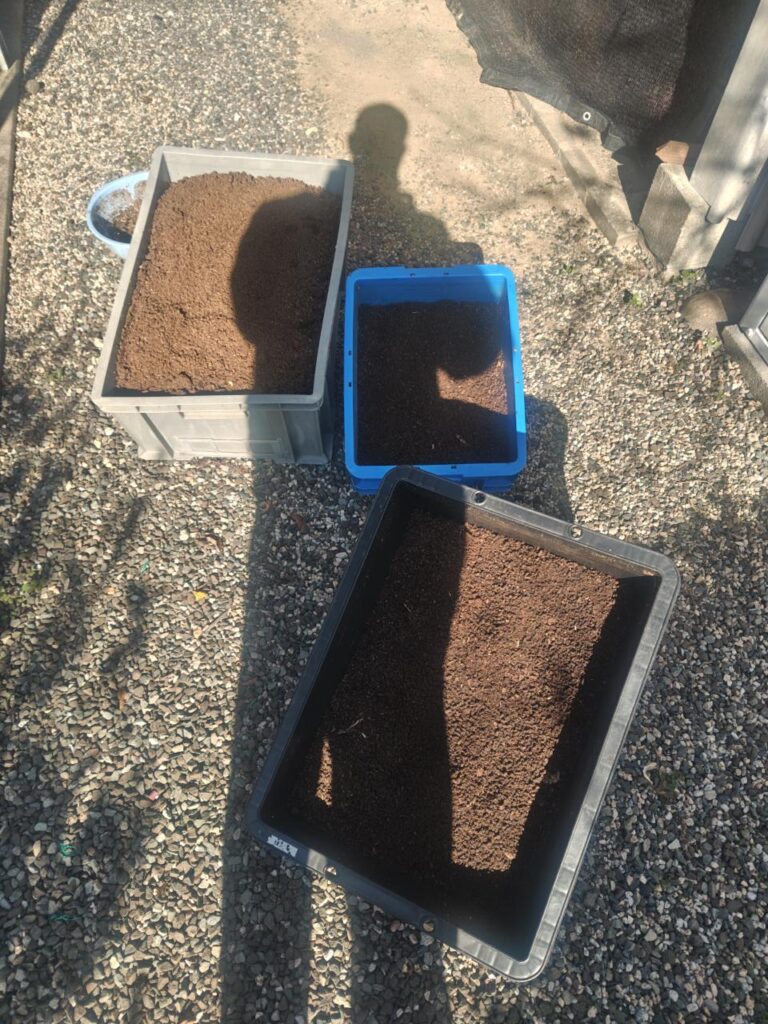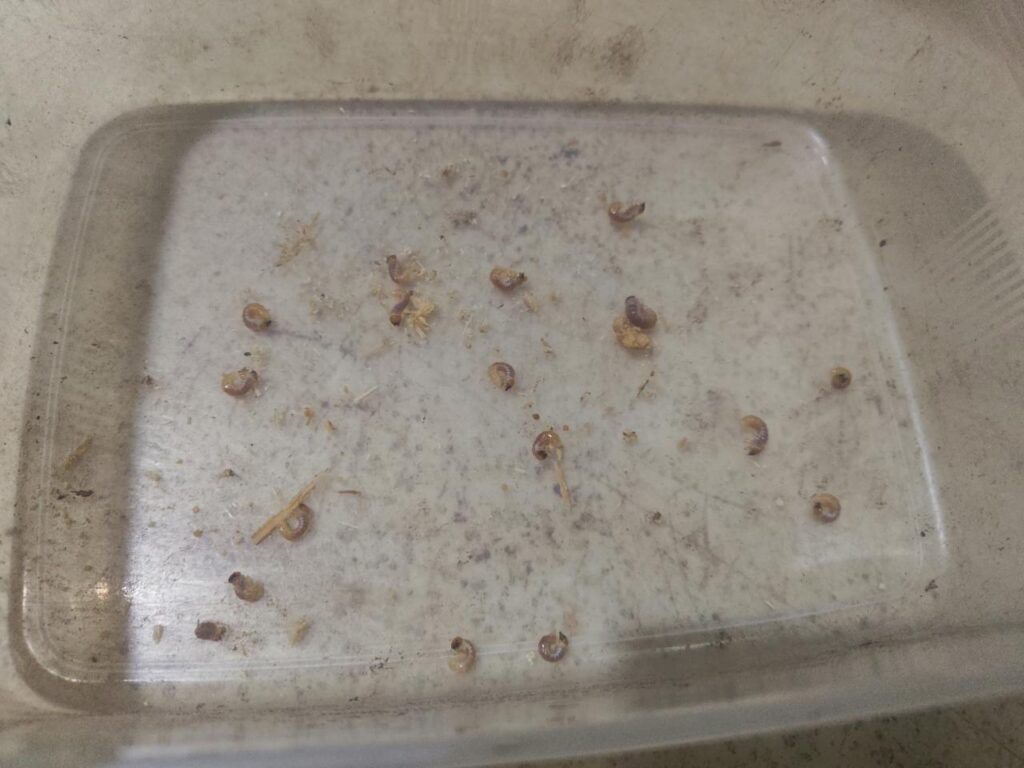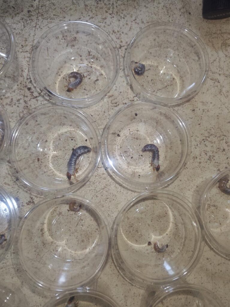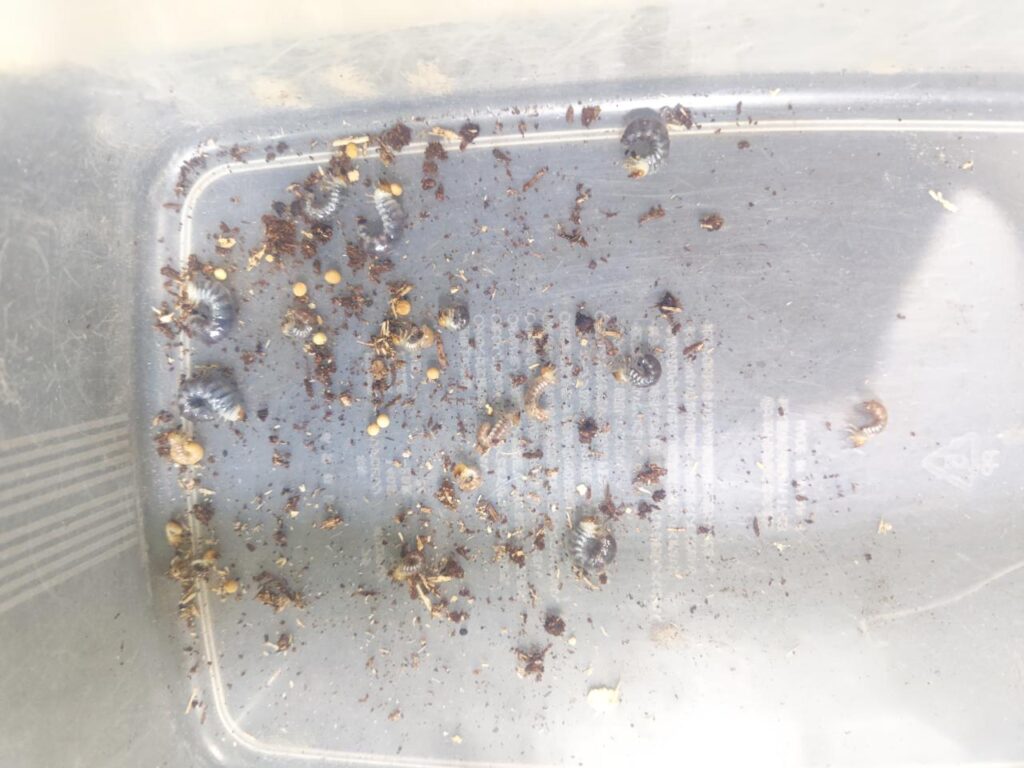 ギラファノコギリの産卵セットを3セットから幼虫採取。 国産オオクワの産卵セットに積もった削りカスや産まなかった材などを数日冷凍します。マットは軽く添加剤を入れて発酵させ、材は硬いものも含まれますので2カ月程埋めて柔らかくします。ここまでの工程を経ていると国産オオクワの幼虫の生き残りもいないはずですので安心して使えます。 残り物の産卵セットですが1セットから30~50頭採れます。 ニジイロやノコギリ系にはこの方法は有効ですね♪