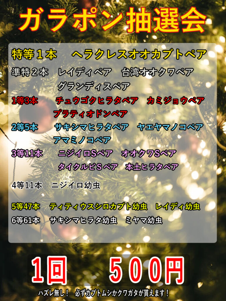 ☆カブトムシ・クワガタのガラポンイベントもやっております!